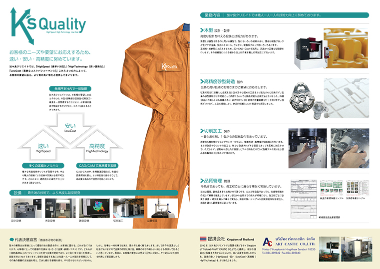 最新の精密機器を取り揃え、木型・精密砂型・各種開発・製造を手がける加々良クリエイト様の会社案内は、同時にホームページの作成と名刺のリニューアルをすることで、共通のコンセプト 名古屋のデザイン事務所 新島村屋<ホームページ制作サイト>名古屋のデザイン事務所 新島村屋<パンフレット制作サイト>