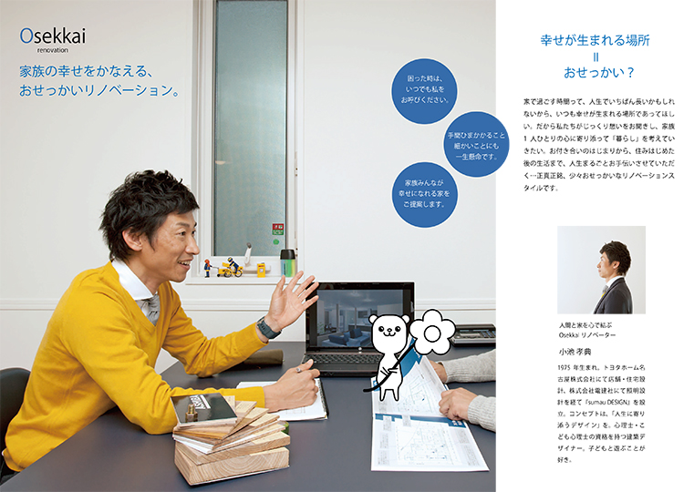 リノベーションについてのコンセプトブックです。一言に「リノベーション」や「リフォーム」と言っても、住む方の生活スタイルや環境・必要要素が全く異なるため、作り手の考え方もお客さまによって全く異なります。 そんな考えや想いを、事例をもとにわかりやすく伝えるためのコンセプトブックです。 名古屋のデザイン事務所 新島村屋<ホームページ制作サイト>名古屋のデザイン事務所 新島村屋<パンフレット制作サイト>